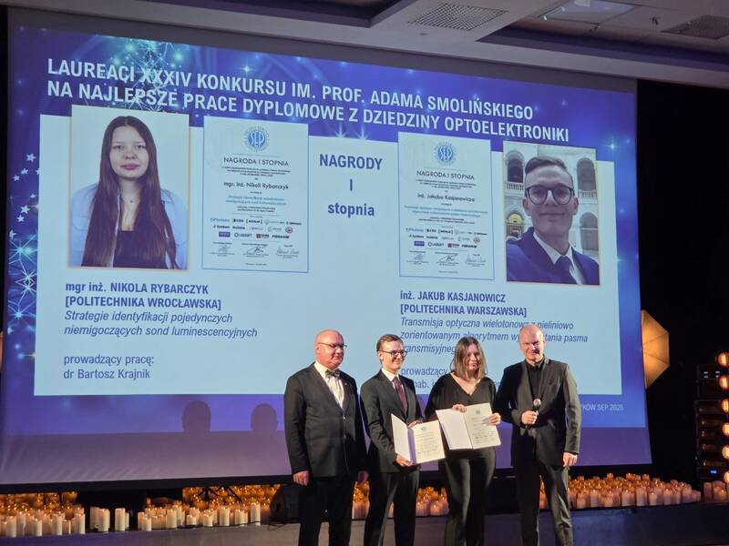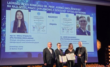 Jury 34. konkursu optoelektronicznego im. prof. Adama Smolińskiego organizowanego przez Stowarzyszenie Elektryków Polskich wybrało także dwie absolwentki fizyki technicznej z Wydziału Podstawowych Problemów Techniki za prace wyróżniające się m.in. innowacyjnością: mgr inż. Adę Drwęcka (promotorem był dr inż. Szymon Zelewski) oraz inż. Helenę Janowską (praca pod kierunkiem dr inż. Anny Musiał).